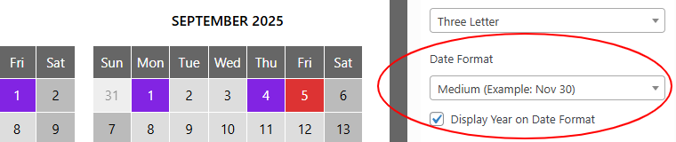 You can change the date format via the calendar editor in the Appearance section as shown in the image below.